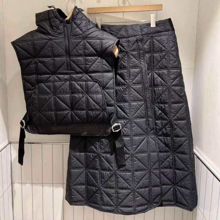 다이아퀼팅 랩스커트와 크롭베스츠입니다. 스커트는 방한용으로 팬츠위에 덧입기도 가능하세요. 요즘 이런 ...