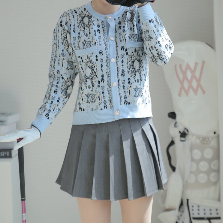 여성 골프가디건 퍼프소매 엔티크 골프니트 상의 가을 겨울 골프웨어 프롬그레이 간절기 신상으로 입고된 ...