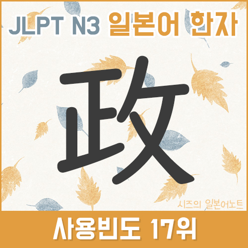 17위 :: JLPT N3 일본어 한자 공부 政 (정사 정) 음독 훈독 PDF