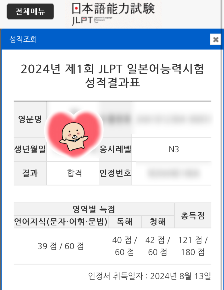 드디어 8월 26일 2024년 제1회 JLPT N3 결과가 발표되었습니다!! 그리고 9월 1일부터 제2회 JLPT ...