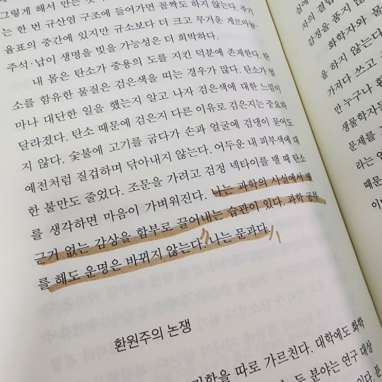 작가의 정체성을 다시한번 확인할 수 있는 부분. 저는 정말 마음에 드는 책은 줄 치면서 읽는 습관이 있습...