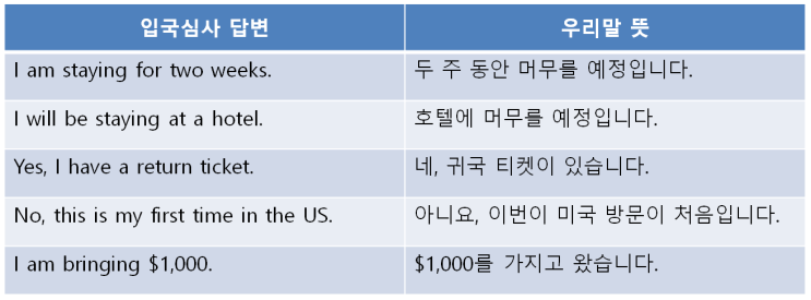 미국 입국 심사 영어 표현 예상 질문과 답변