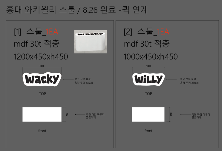 홍대 와키윌리에 납품하게된 디자인 벤치의자