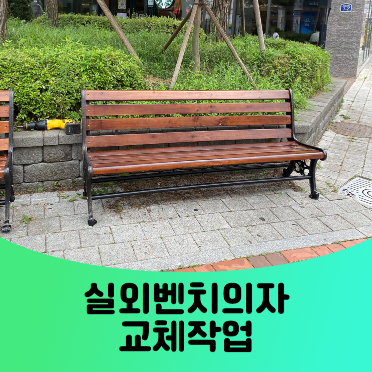 건물 앞에 오래된 실외벤치가 있는데 너무 오래되고 낡아서 교체를 하고 싶어요. 등받이가 있는 형태로 교...