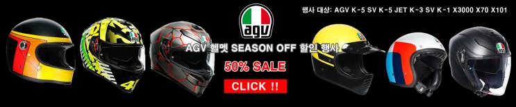 AGV 헬멧 시즌오프 모델 50% 할인 행사