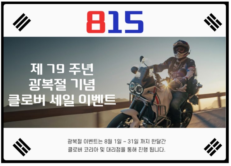 고품질의 이탈리아 정통 라이딩 기어 전문 브랜드인 클로버 코리아에서 올해도 제79주년 815 광복절을 맞이...