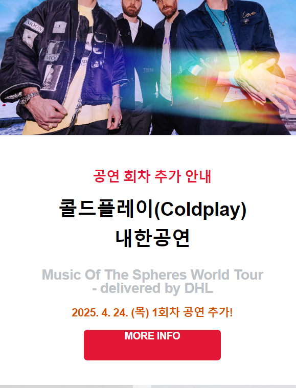 2025 콜드플레이 내한 콘서트 회차 추가 안내 라이브네이션 선예매 9.27일 낮 12시! 4.24(목)1회차 추가공연