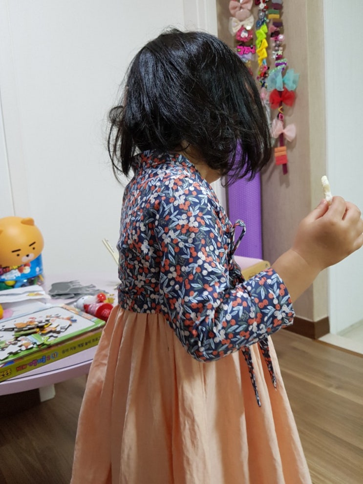 안녕하세요. 고려한복학원입니다. 오늘은 이정민 학생이 만든 여아 저고리와 치마를 소개해 드릴게요! 한복...