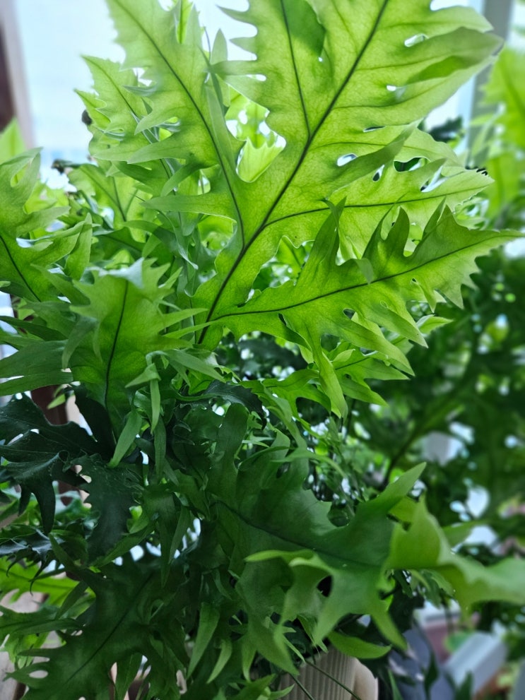 다비드펠고사리 화분 하나로 마치 정글이 된듯한 느낌입니다. 완벽히 푸르고 풍성하게 자라고 있습니다. 식...