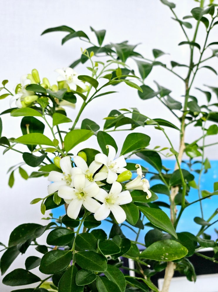 게으름을 피우더니 어쩌려고 이제서야 꽃을 피워 안 써도 될 신경을 쓰게 만들고 있는 오렌지 자스민입니다...