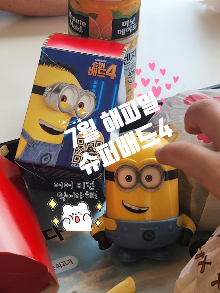 [천안 맥도날드] 맥도날드 해피밀. 7월 맥도날드 해피밀. 슈퍼배드4 해피밀. 맥도날드 신메뉴 영동샤인머스켓맥피즈. 까지 야무지게 먹고왔지요~~~~ 아이러브천안