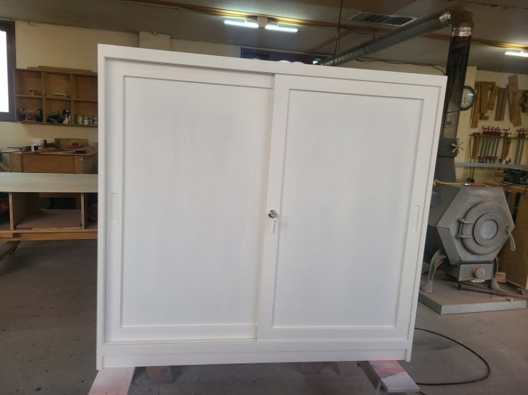 원목에 화이트 도장 마감 미닫이수납장 입니다 특수용도의 수납장으로 원하시는 사이즈와 디자인으로 주문...
