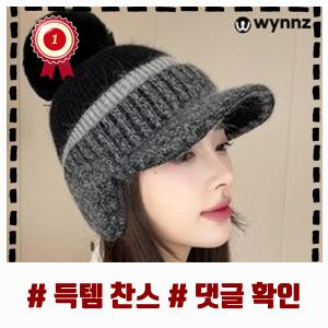 최고의 윈즈 배색 여성 골프모자 겨울 골프 방한 귀달이 털 모자 귀도리 니트