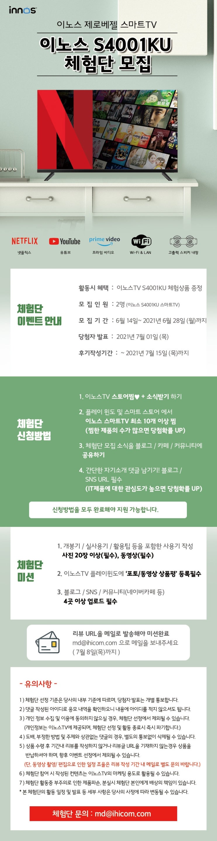 [공유] 이노스 넷플릭스 스마트 TV S4001KU 스마트 WiFi 티비 무료체험단