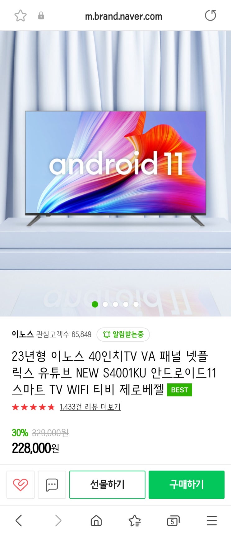 이노스 40인치 안드로이드11 TV