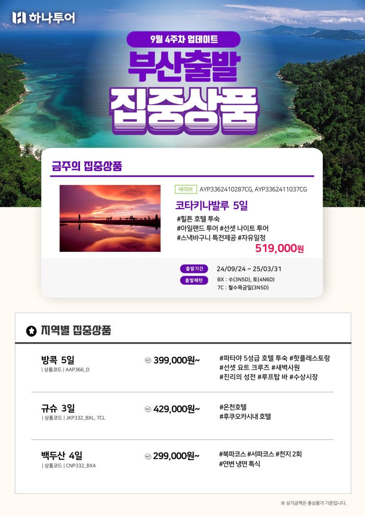 부산출발 해외여행 집중상품 안내 (9월 4주차)