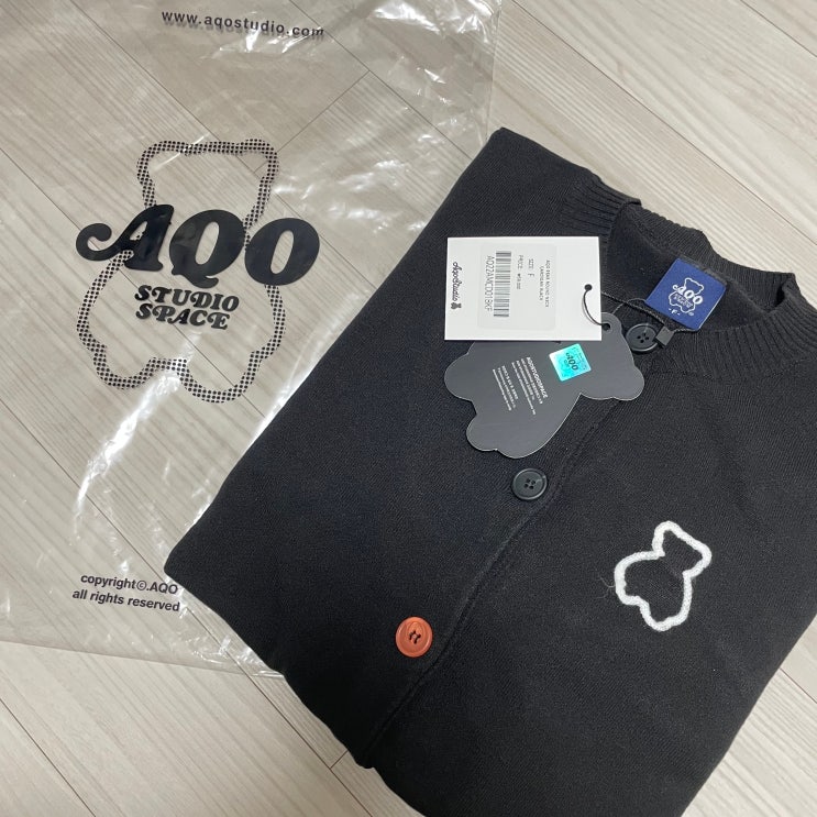 아코스튜디오스페이스가디건 / AQO BEAR ROUND NECK CARDIGAN BLACK