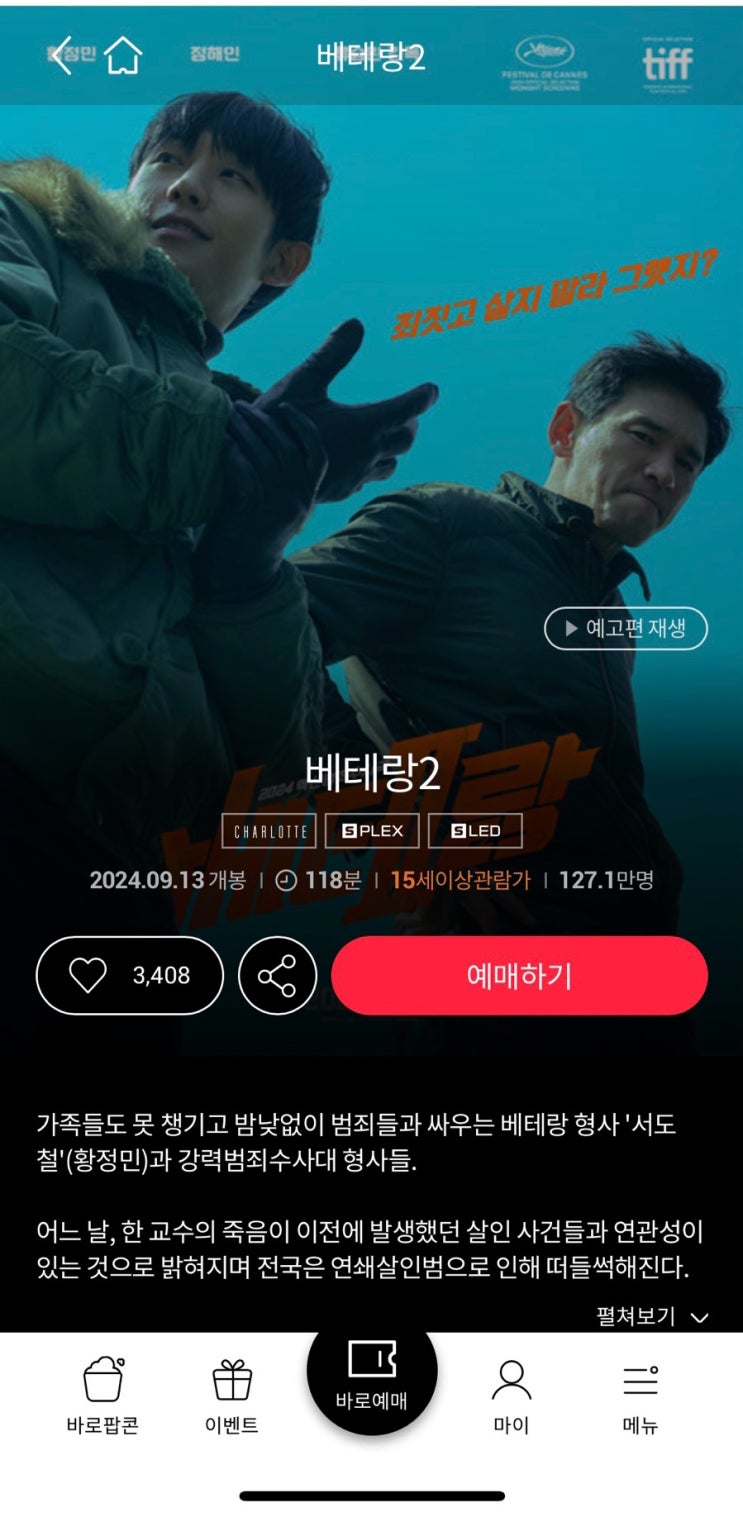 베테랑2 쿠키1 있음 5분 기다리고 5초 봤네?
