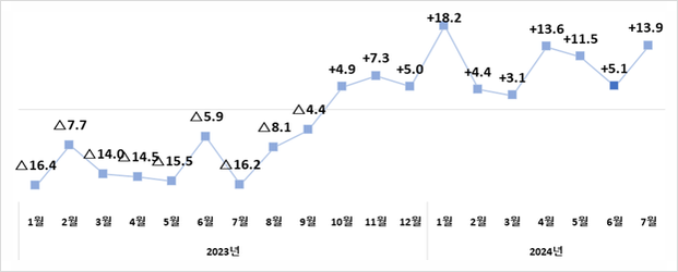 7월 수출 전년比 14%↑, 10개월 연속 플러스