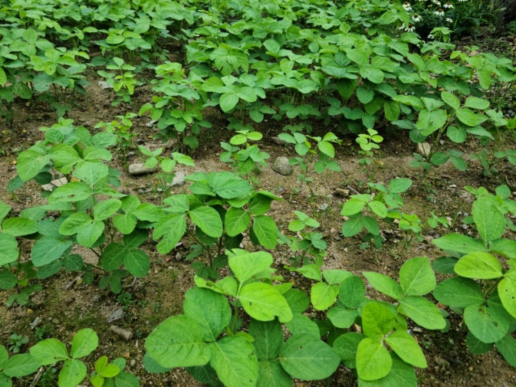 미소진된장에서는 콩순자르기를 시작합니다 일찍 심은 콩은 두번정도 콩순자르기를 하지만 미소진에서는 6...