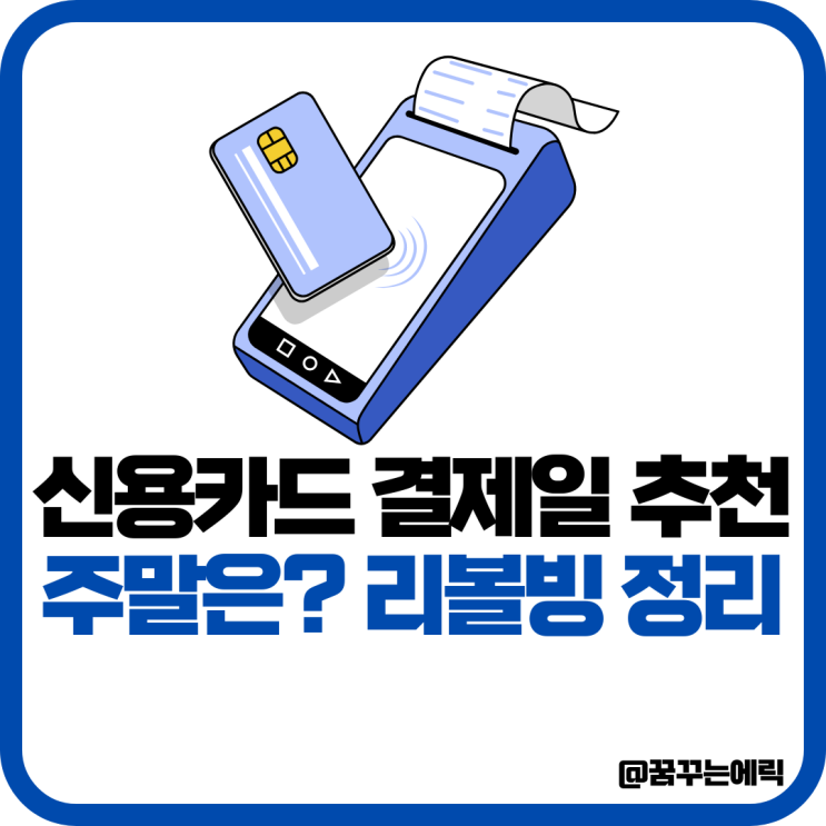 신용카드 결제일 추천 변경 주말 리볼빙 총정리 안녕하세요, 경제 인플루언서 꿈꾸는에릭입니다. 많은 분들...