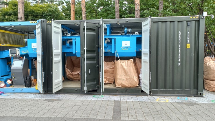 은평구 평화공원에 자리한 컨테이너들 재활용품을 피드 넣어 주면 알아서 자동분리해 주고 포인트도 적립해...