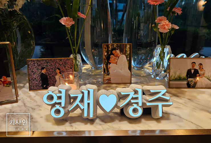 [웨딩소품] 웨딩 포토테이블용 간판 (조명토퍼)