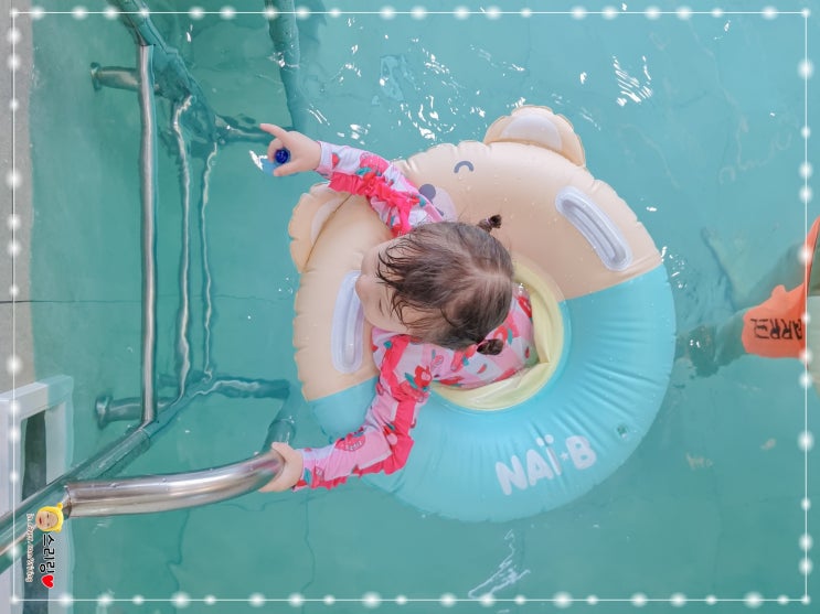 어린이 물놀이 준비물 나이비 아기 보행기튜브 곰돌이 귀여워