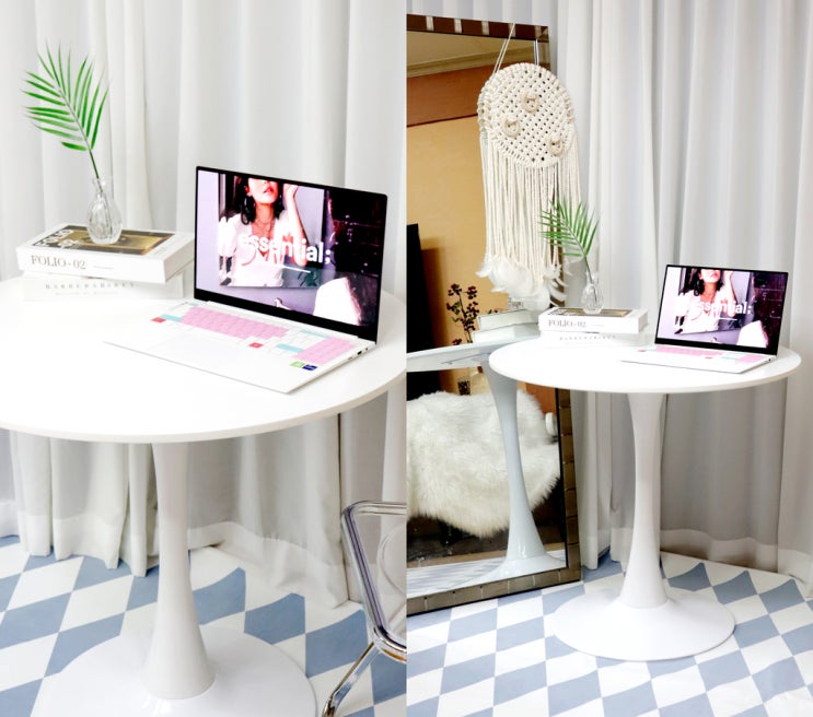 감성 화이트 식탁! 가정용 인테리어 그레떼 원형테이블 800 추천 요즘 제 작업 공간이에요 ㅎㅎ 앉아서 힐...