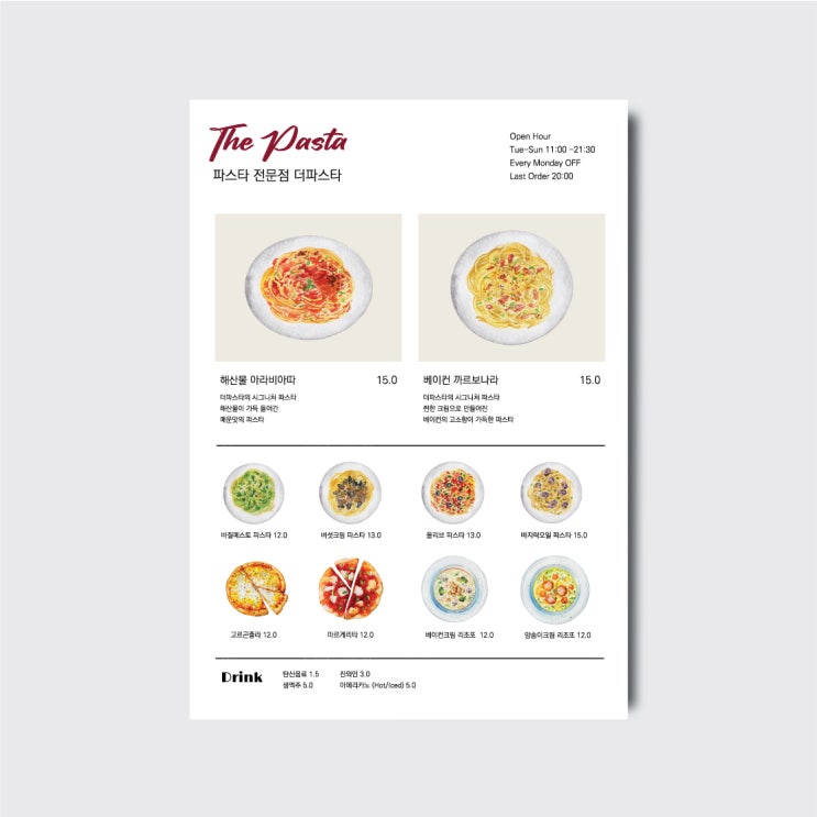 파스타 양식 레스토랑 메뉴판 디자인 소량으로 셀프 제작하기 !