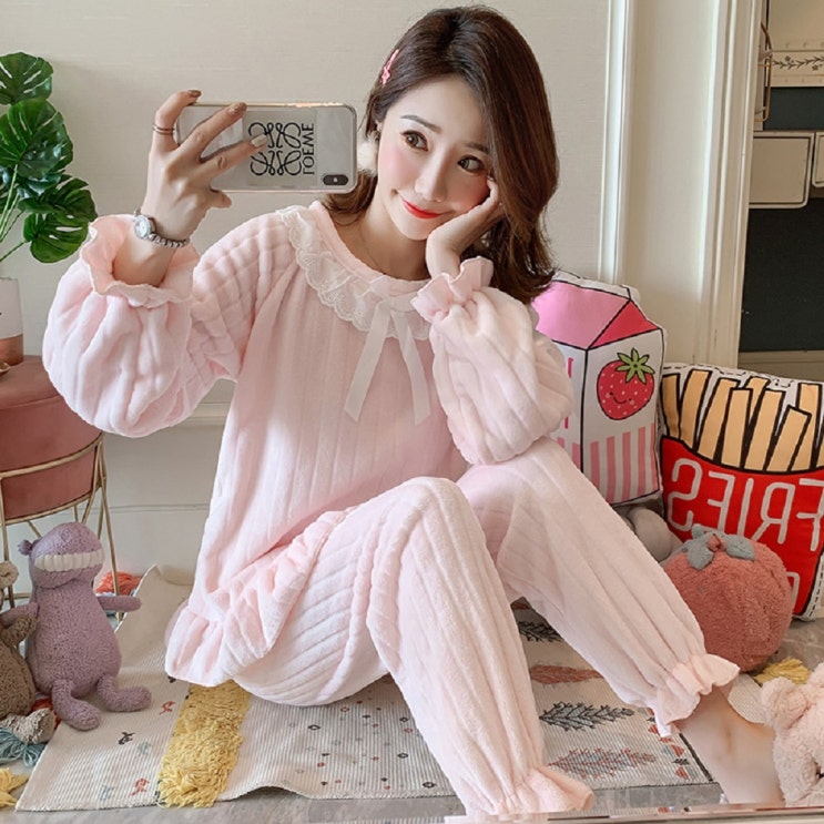 빠른배송 합리적인가격 우수한품질 재구매율높은 가성샵 잠옷 홈웨어 수면 극세사 겨울 파자마 여성 레이스...