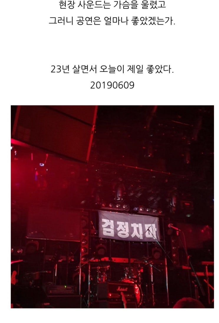 저 날 이후 5년이나 지났지만, 지금까지도 처음 검정치마 공연 본 저 날이 살면서 젤 행복했다. 내 로망 중...