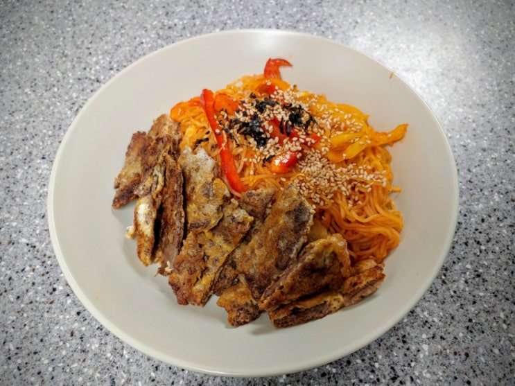추석 맞이 분식으로 육전 비빔면을 만들었다. 최근 방영된 TVN 서진이네에서 인기를 얻은 메뉴인 '...