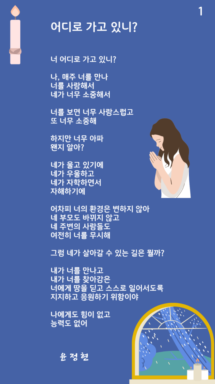 어디로 가고 있니? 너 어디로 가고 있니? 나, 매주 너를 만나 너를 사랑해서 네가 너무 소중해서 너를 보면...