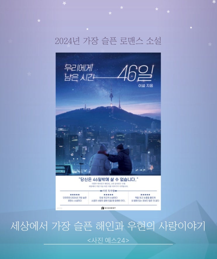 〈우리에게 남은 시간이 46일〉 이 소설은 시한부인 해인의 곁에서 슬퍼하며, 끝까지 사랑과 지지를 아끼지...