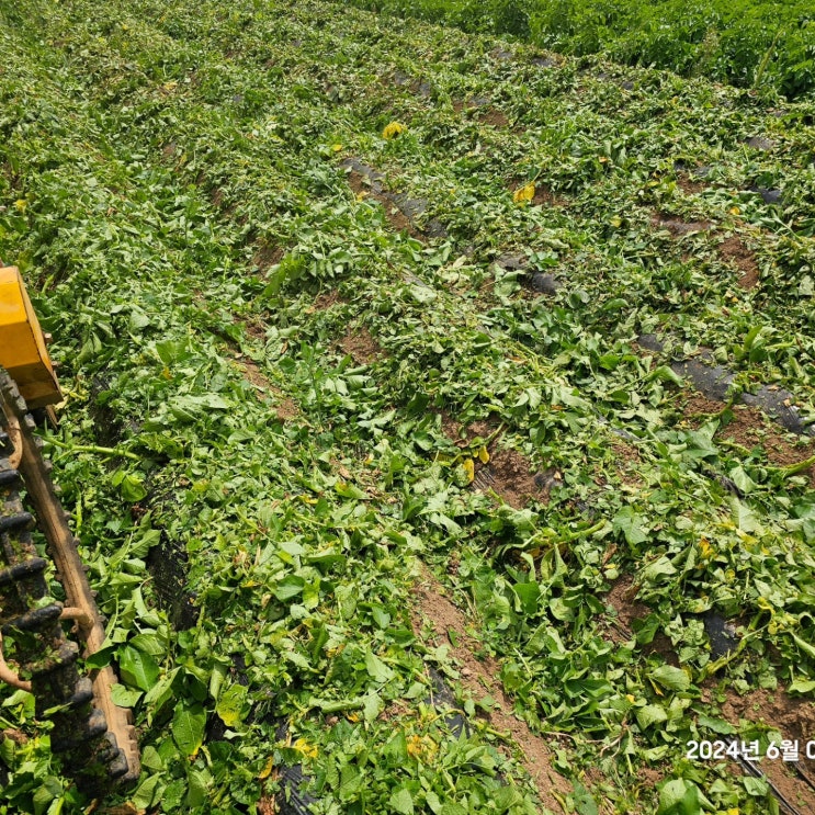 농업기술센터에서 감자싹제거기 빌려다가 미리 짤라놓았다. 이런것도 또 첨 써보는것이라서 처음엔 비닐을 ...