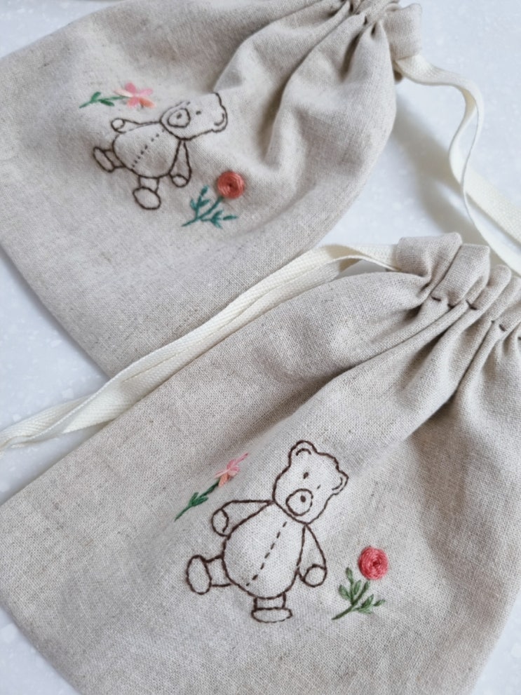 프랑스자수, 사랑스러운 곰돌이 자수 스트링 파우치 만들기