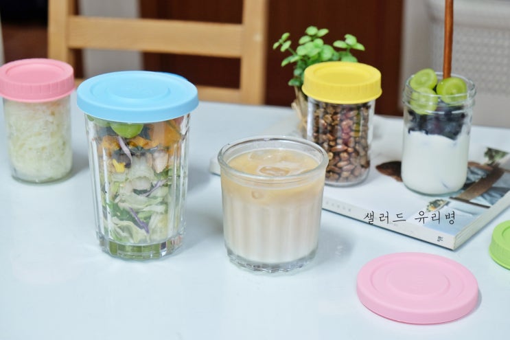 샐러드 유리병 밀프랩 실리콘 뚜껑 유리용기 활용도 굿