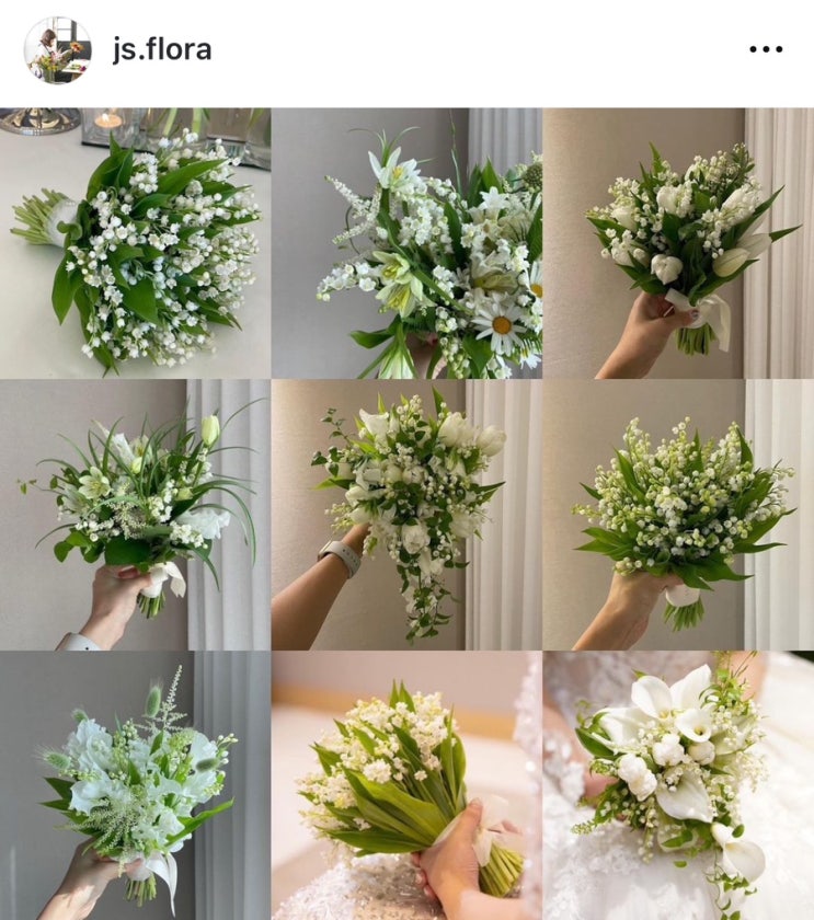 하얗고 그리너리한 제이스플로라 은방울꽃 믹스 본식 부케 꽃말