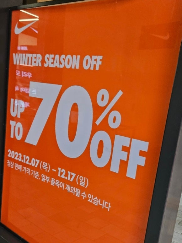 [시흥] 시흥신세계아울렛 "나이키" UP TO 70%세일 신시아 나이키 할인정보 가격사진 공유