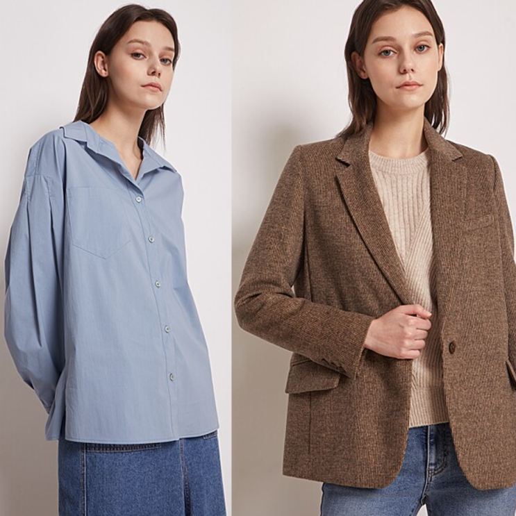 지컷(g-cut) 블라우스 원피스 트위드 자켓 여성스럽게 코디하기