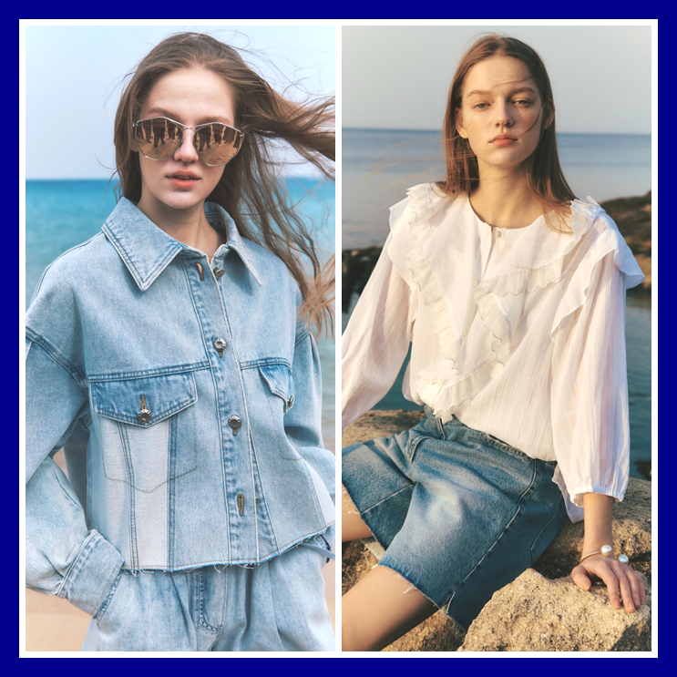 지컷 데님 반팔 자켓과 청청패션,여름 레이스 블라우스 코디