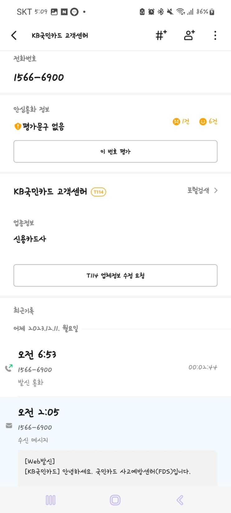 국민카드 사고예방센터 FDS 1566-6900 해외가맹점 승인 문자 스팸아님