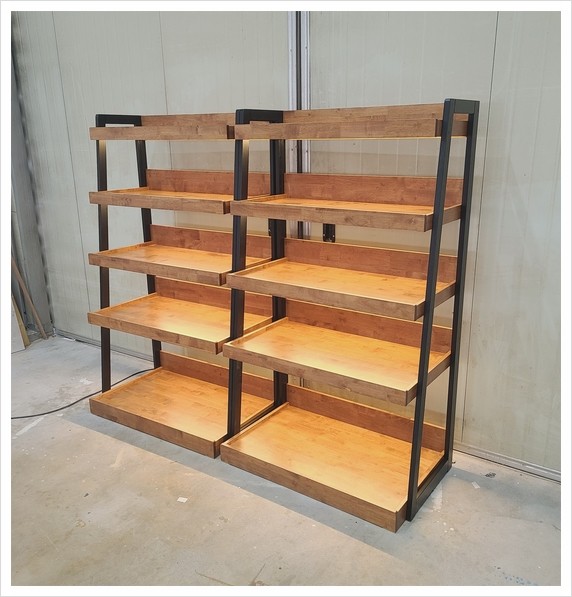 led 바조명을 매립한 원목 진열매대, 제품 진열대