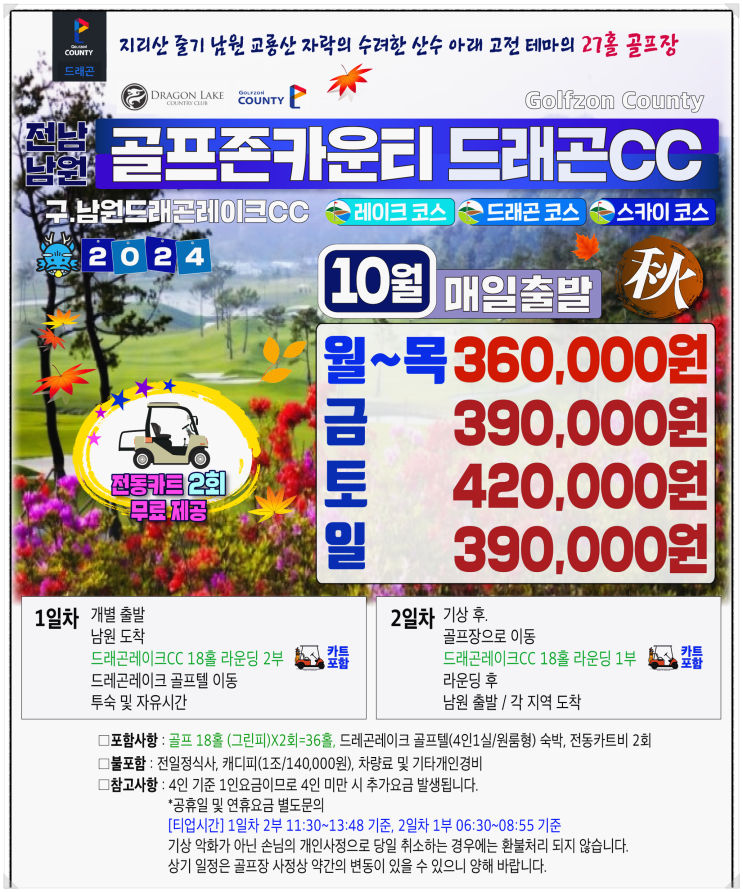 국내골프 남원드래곤cc 10월 1박2일 패키지