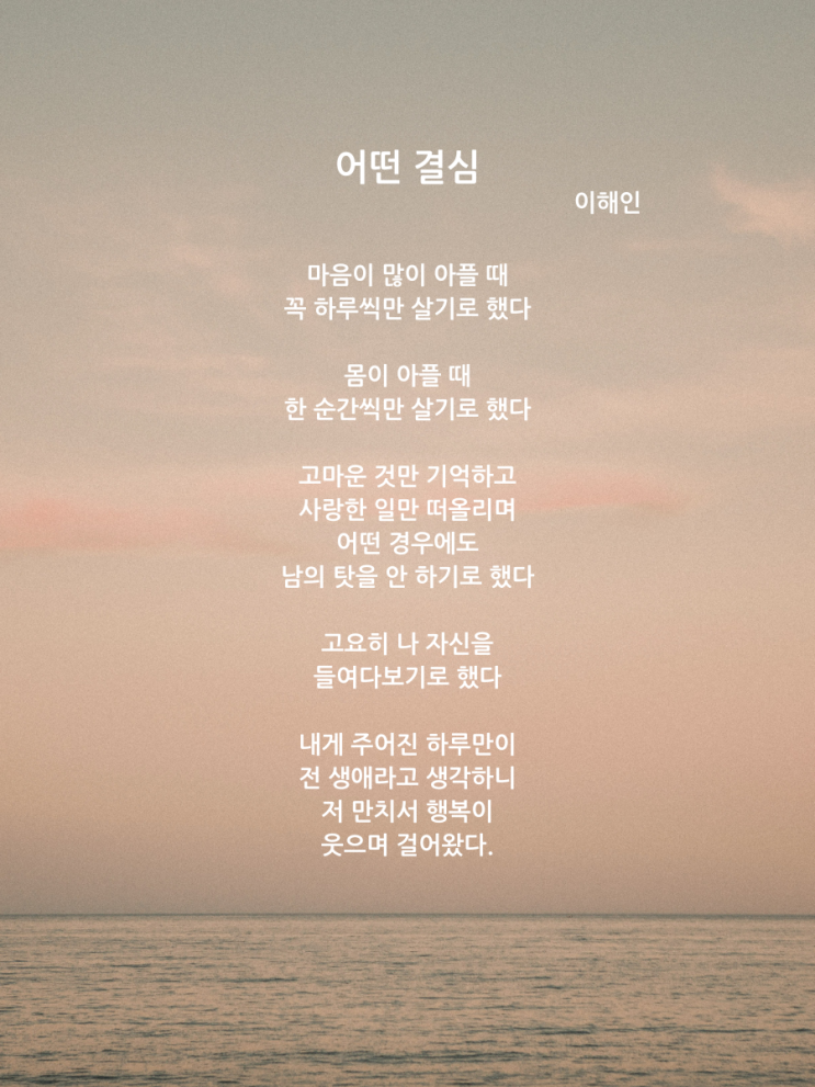 <어떤 결심>- 이해인/ 힘들 때/ 좌절했을 때/ 죽고 싶을 때 읽는 시