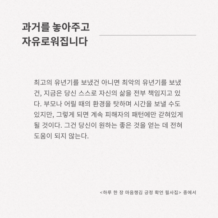과거를 놓아주고 자유로워집니다 - <하루 한 장 마음 챙김 긍정 필사집> 중에서/ 긍정적인 글귀