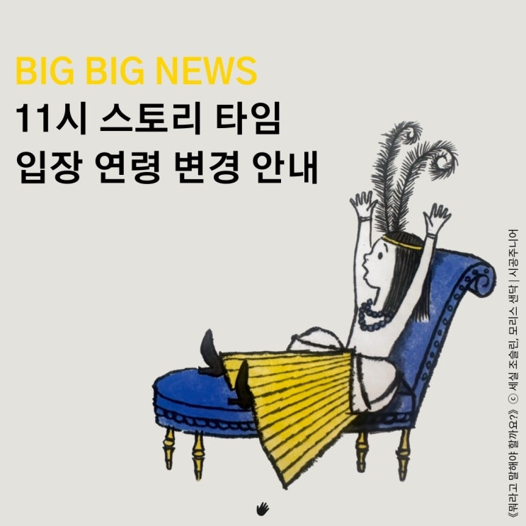 11시 스토리타임 입장 연령이 36개월 이상으로 조정되었습니다. 1시 스토리타임은 그대로 48개월 이상 입장...