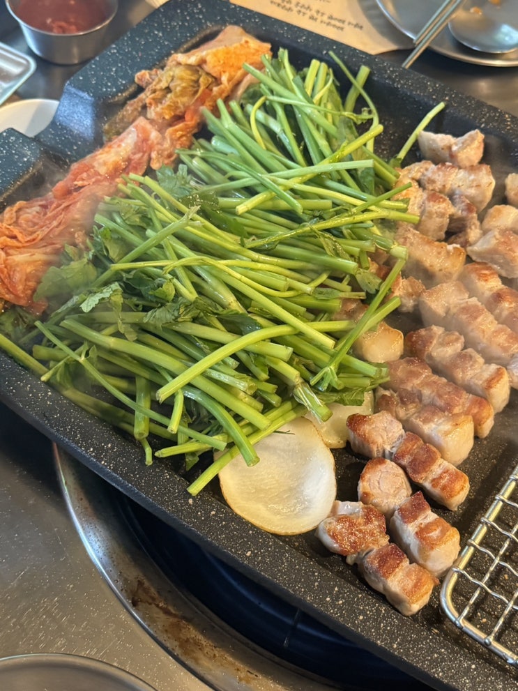 반려동물 동반 가능 홍대 맛집 경의선 숲길 미나리삼겹살 고기꾼 김춘배