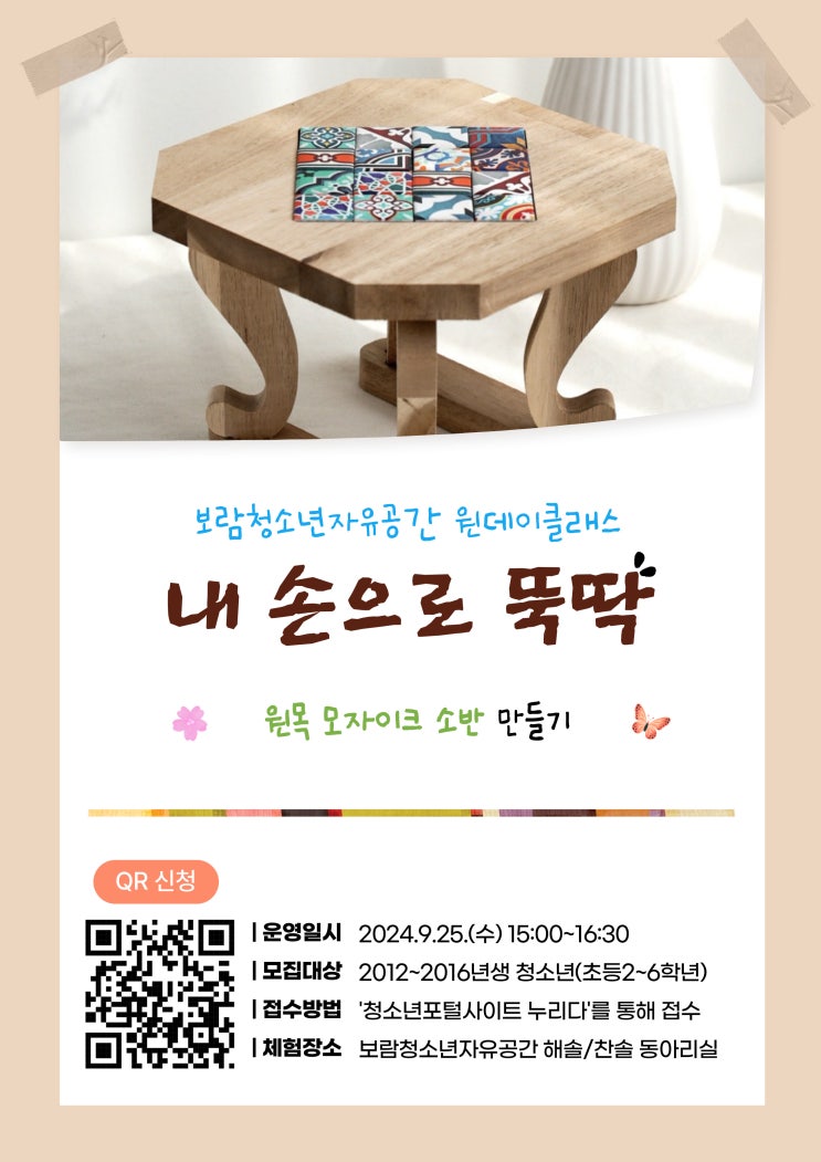 [보람청소년자유공간] '내 손으로 뚝딱(원목 소반)' 참가자 모집 안내해 드려요. 보람청소년자유...